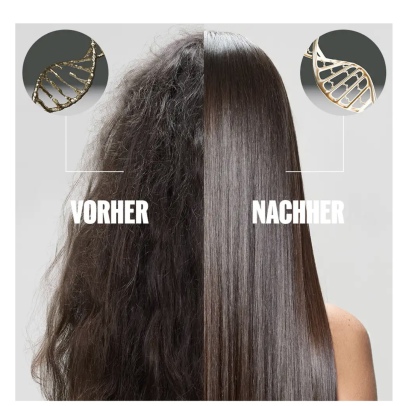 Wie bei einem Skinfiller füllt die innovative Technologie das Haar auf und schafft neue stabile, langanhaltende Bonds, die es von innen heraus restrukturieren - für deutlich mehr Geschmeidigkeit und Anti-Frizz.